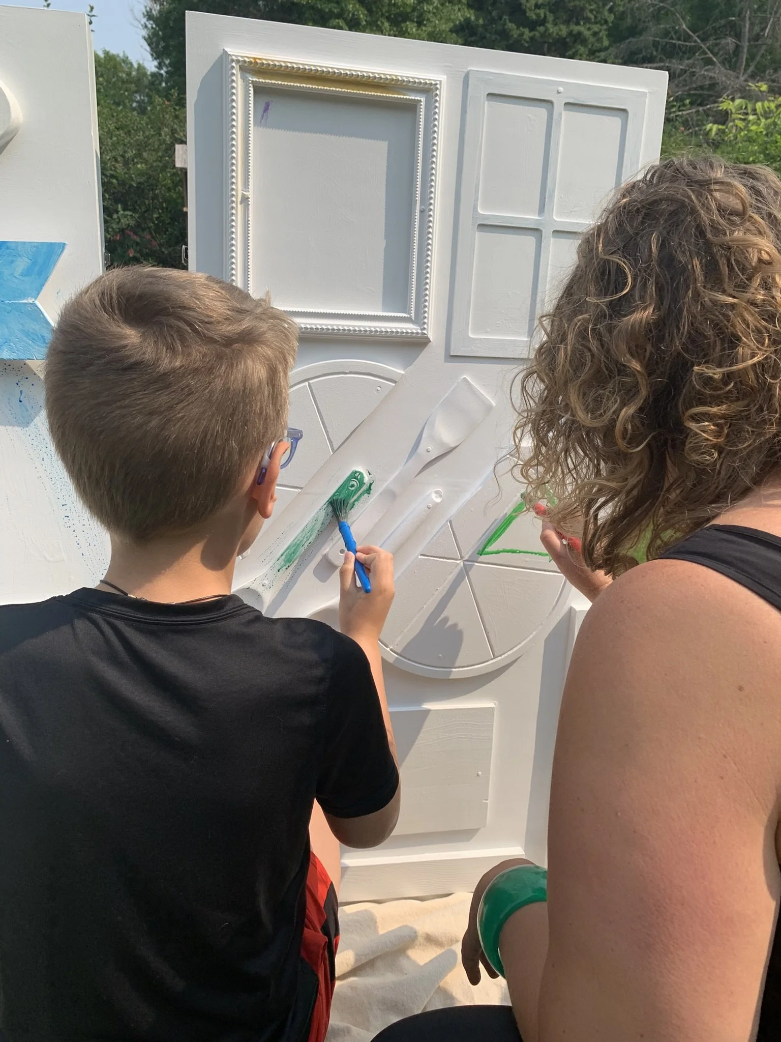 Our "Traveling Canvas" is designed for ultimate flexibility and fun. It's a washable, wooden surface that we bring to your location, ready for a vibrant, mess-friendly artistic adventure.